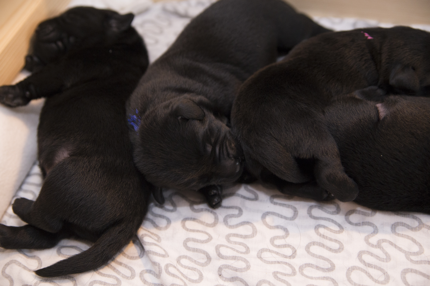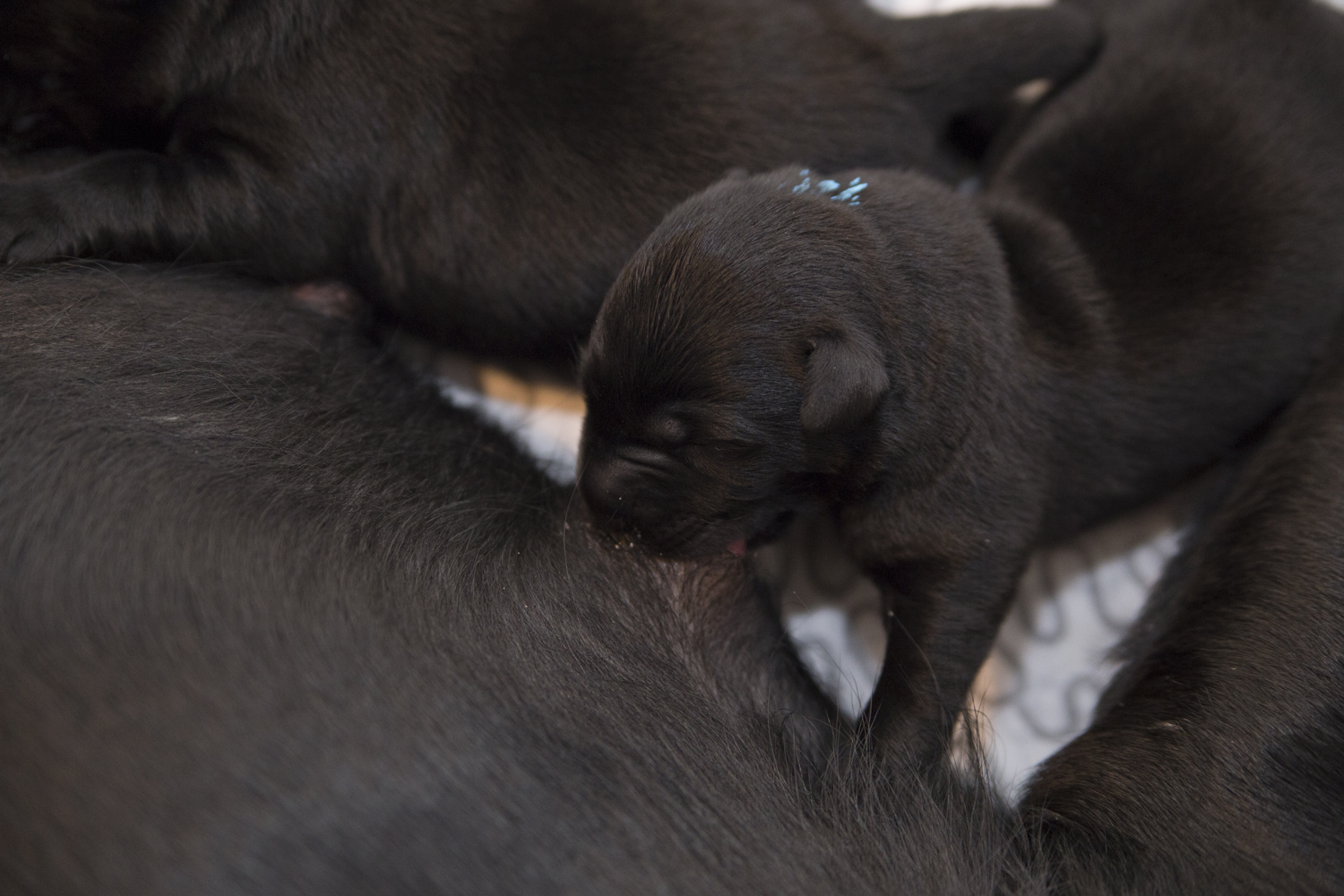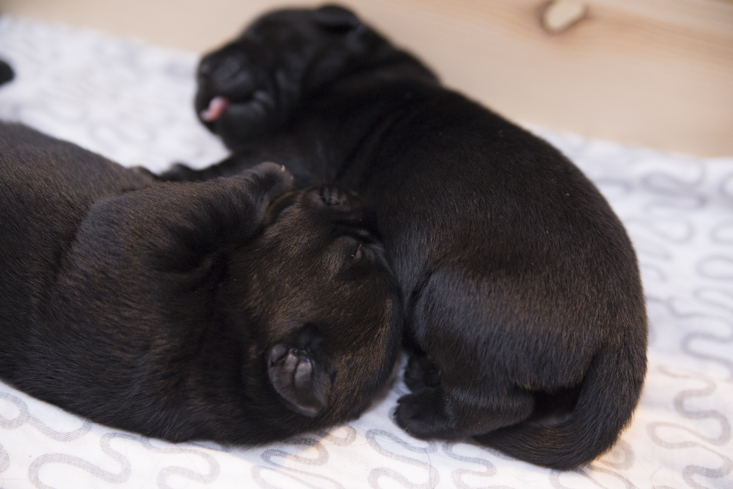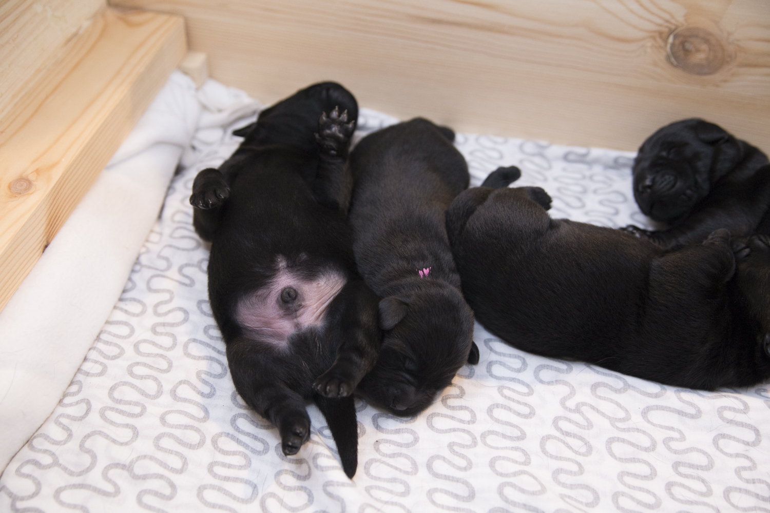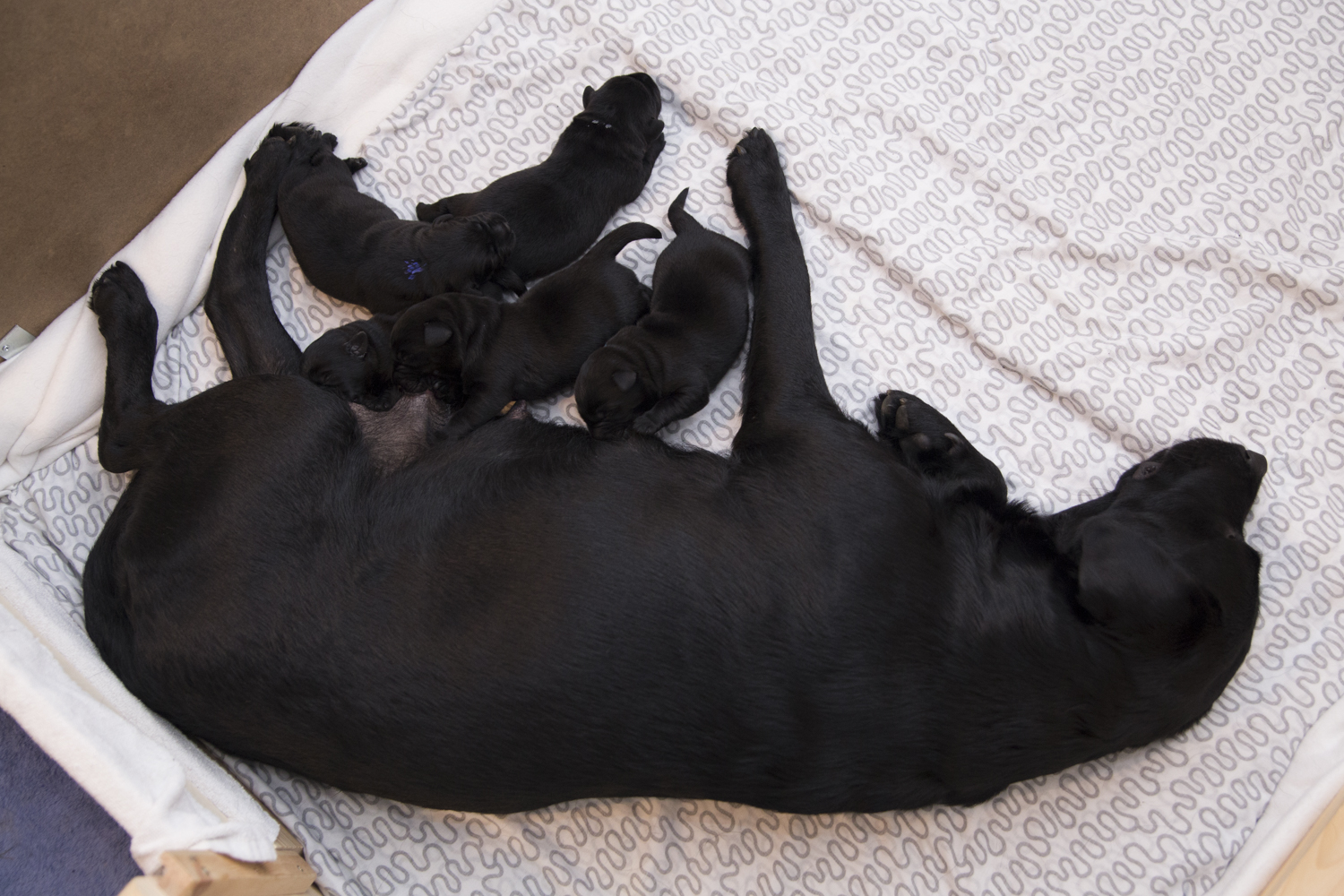 Vor 5 Tagen hat Fiby sechs unglaublich süßen Zwergen das Leben geschenkt. Im Moment sind unsere Nächte noch ziemlich schlaflos…gerade in der ersten Lebenswoche ist die größte Angst eines Züchters, dass einer der Welpen irrtümlich von der Mami zerquetscht wird. Nicht weil sie eine schlechte Mami wäre, sondern weil sie kaum Schlaf abbekommt: Die Welpen trinken am Anfang selten gemeinsam…somit ist Fiby alle 20-30 Minuten mit säugen beschäftigt und schläft dementsprechend wenig. Das pendelt sich aber bald ein…dann trinken die Welpen meist alle gemeinsam und Fiby wird sich auch wieder ihre Auszeiten gönnen und nicht mehr 24 Stunden durchgehend in der Wurfkiste verbringen. Wir genießen trotz des Schlafentzuges jede Minute mit den Babies. Heute gibts ein paar Impressionen aus der Wurfkiste für euch:
