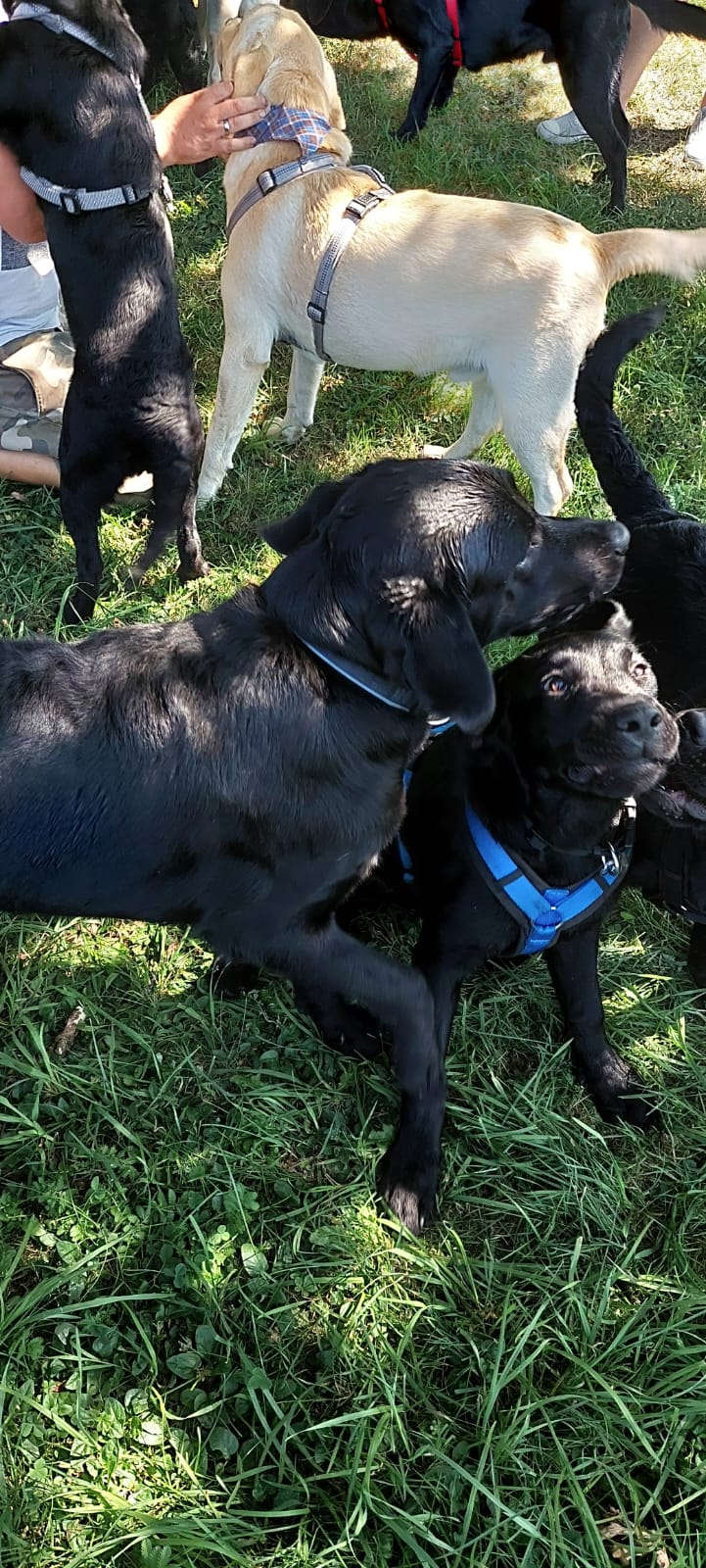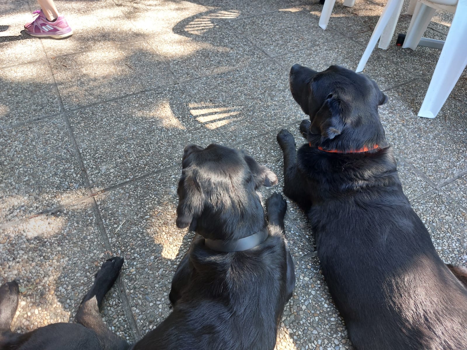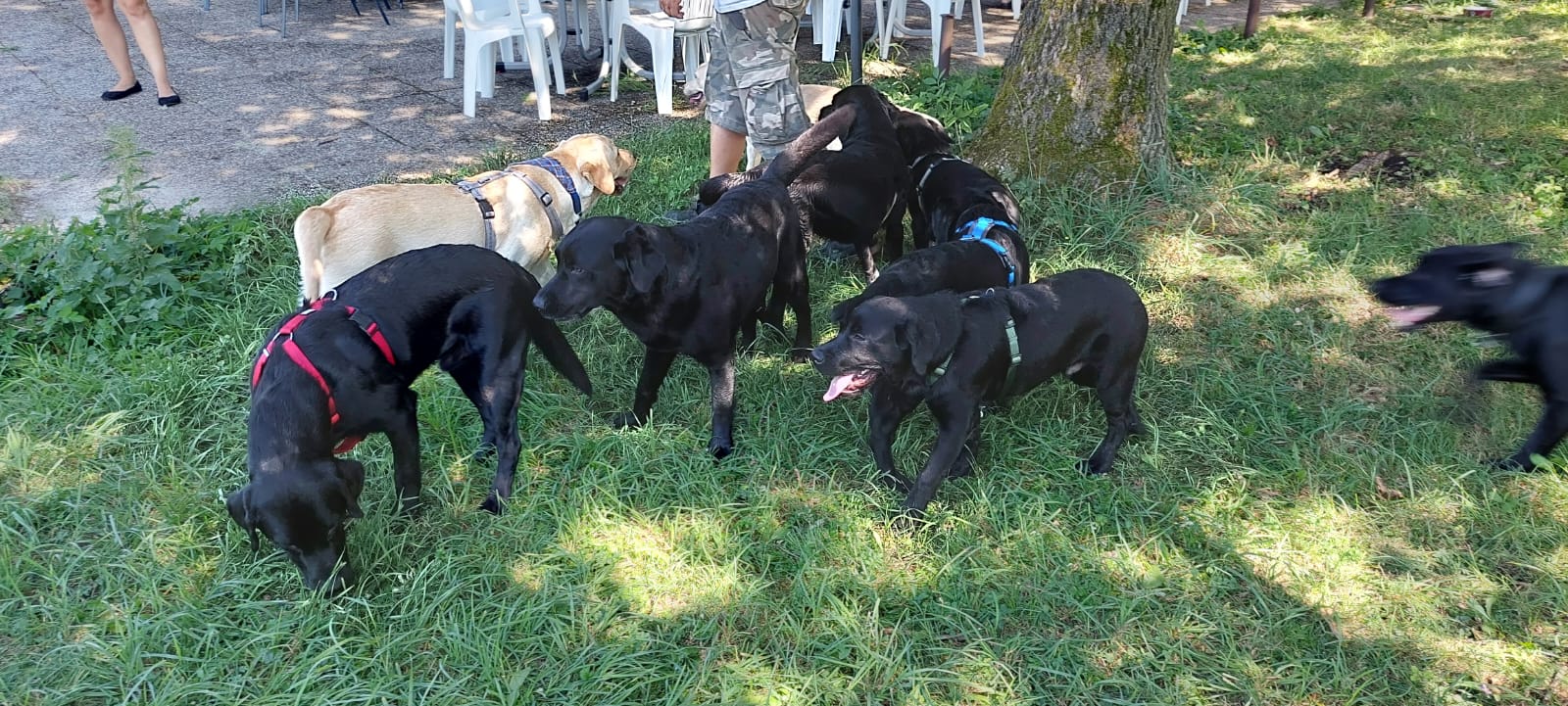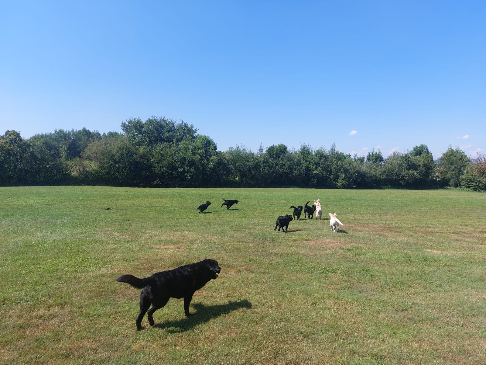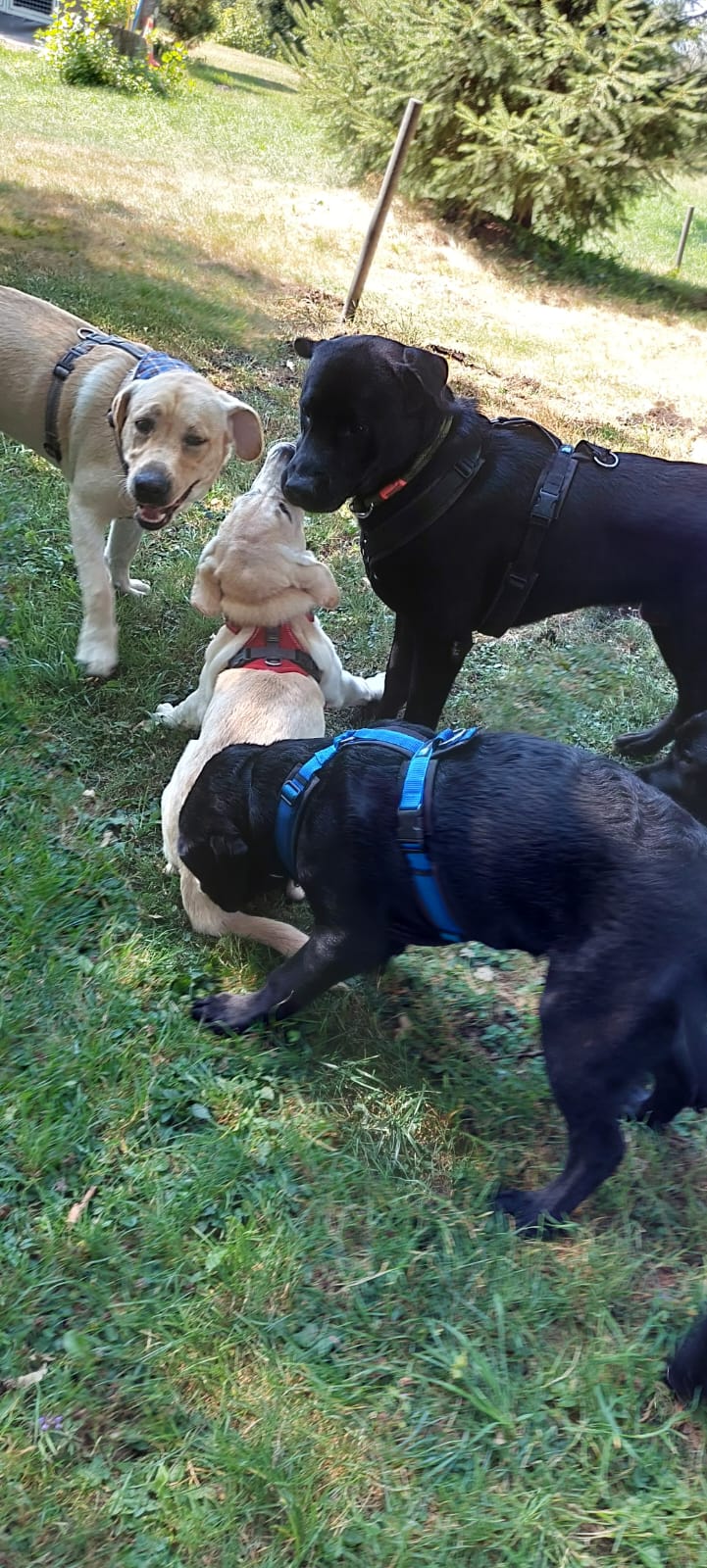 Bei strahlendem Sonnenschein und über 30 Grad, trafen letztendlich 21 Labrador Retriever, 2 altdeutsche Hütehunde (die Mitbewohnerinnen von Berti aus unserem B-Wurf), 31 Erwachsene und 7 Kinder aufeinander. Und weder bei Mensch noch Hund gab es irgendwelche gröberen Streitigkeiten. Alle Hunde haben sich zu supersozialen und fröhlichen Retrievern entwickelt – Hauptziel aller Vierbeiner war Spiel & Spaß. Und wenn es einem Hund doch zu viel wurde, wurde dies sofort von den anderen berücksichtigt und akzeptiert. Wirklich toll. Ich war diesbezüglich auch vom F-Wurf schwer beeindruckt…immerhin sind die Zwerge erst 5 Monate alt.