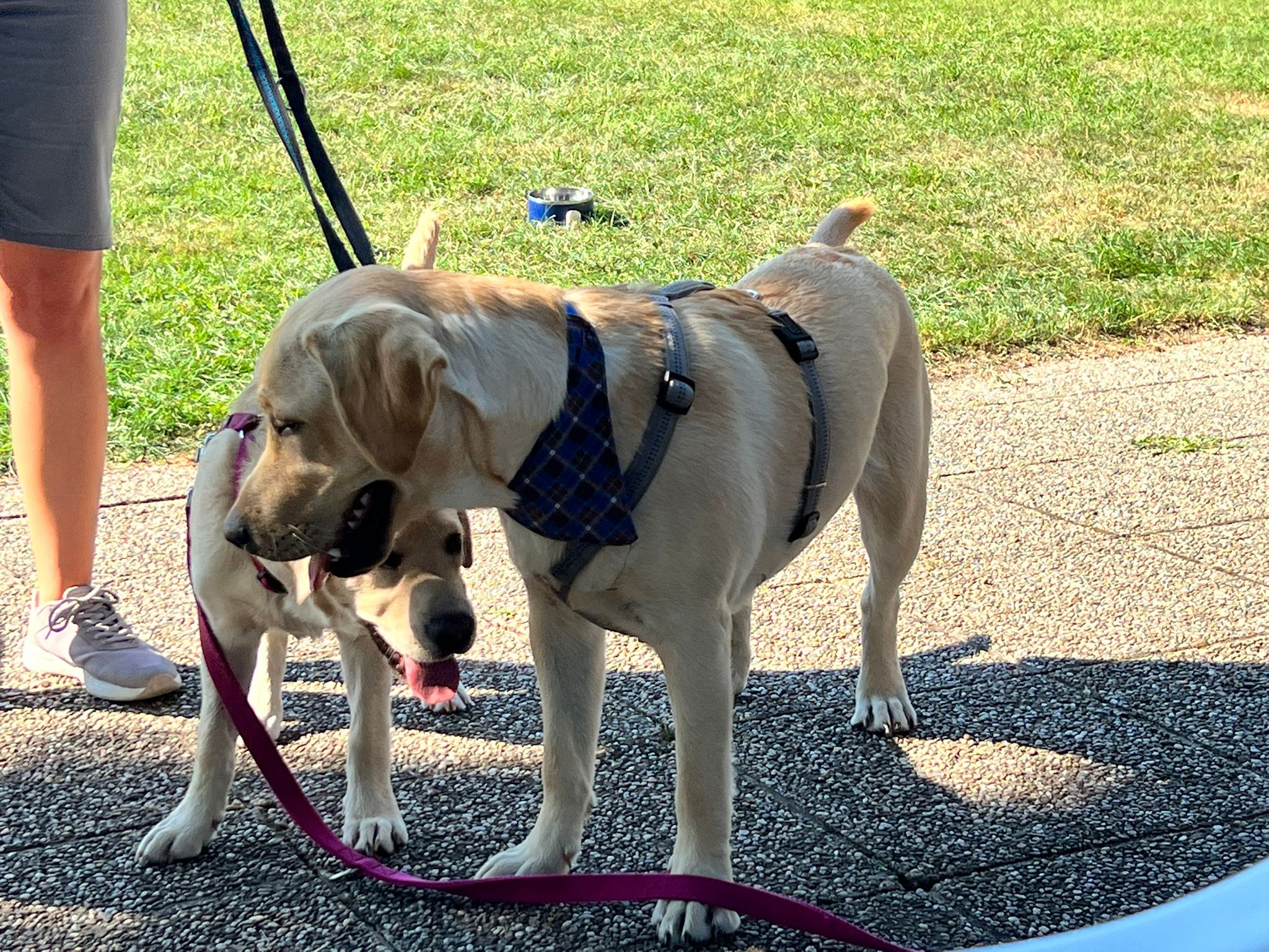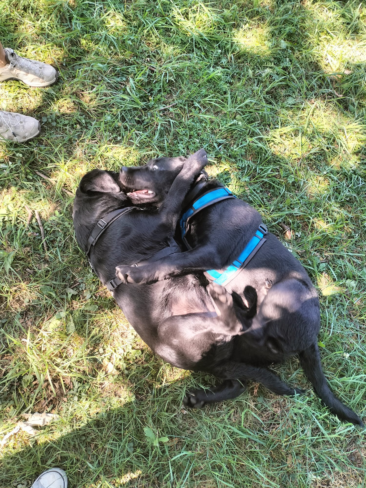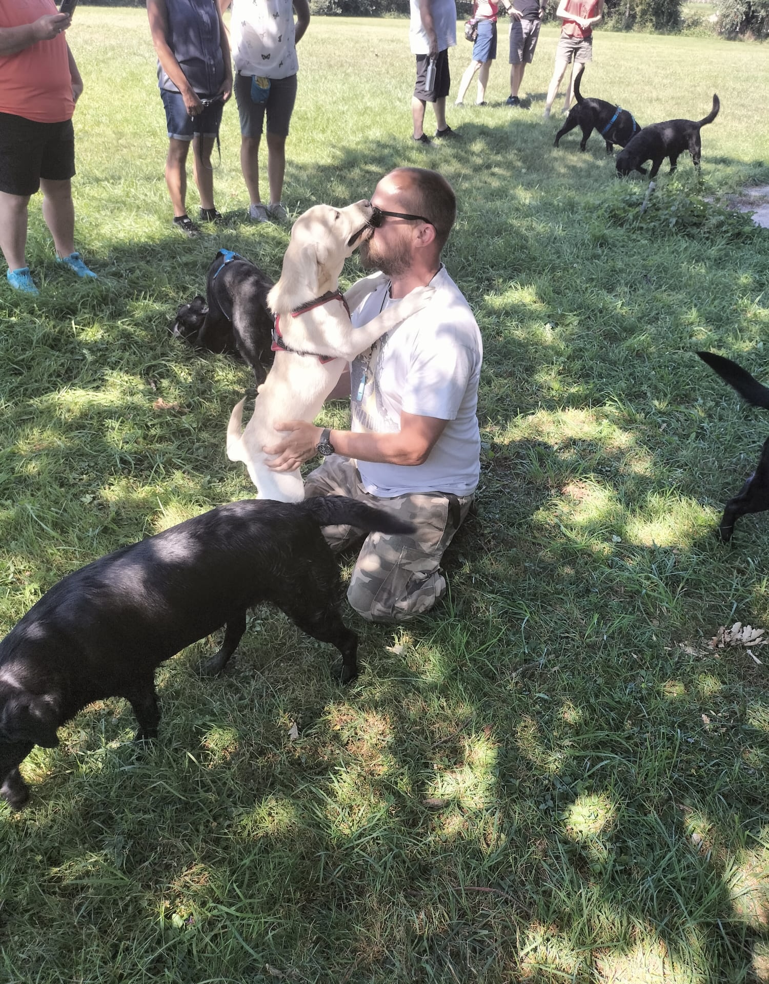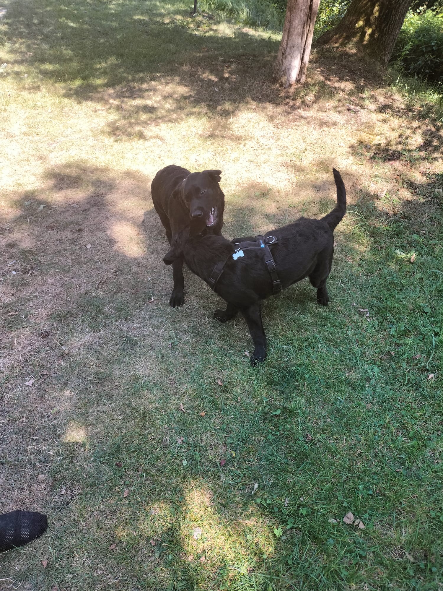 Bei strahlendem Sonnenschein und über 30 Grad, trafen letztendlich 21 Labrador Retriever, 2 altdeutsche Hütehunde (die Mitbewohnerinnen von Berti aus unserem B-Wurf), 31 Erwachsene und 7 Kinder aufeinander. Und weder bei Mensch noch Hund gab es irgendwelche gröberen Streitigkeiten. Alle Hunde haben sich zu supersozialen und fröhlichen Retrievern entwickelt – Hauptziel aller Vierbeiner war Spiel & Spaß. Und wenn es einem Hund doch zu viel wurde, wurde dies sofort von den anderen berücksichtigt und akzeptiert. Wirklich toll. Ich war diesbezüglich auch vom F-Wurf schwer beeindruckt…immerhin sind die Zwerge erst 5 Monate alt.