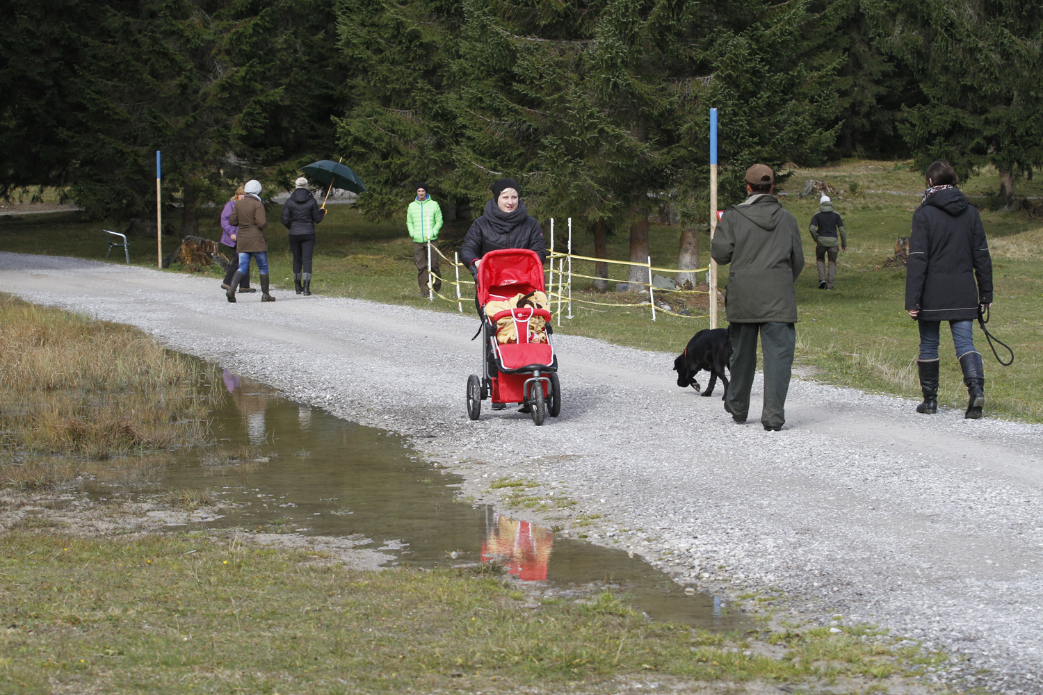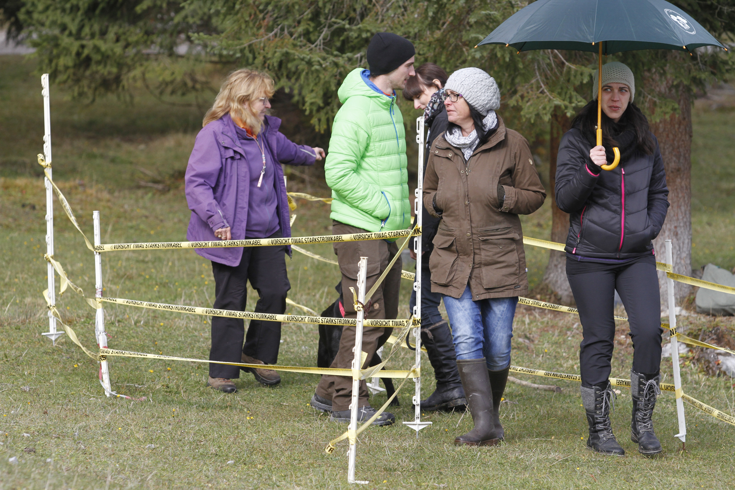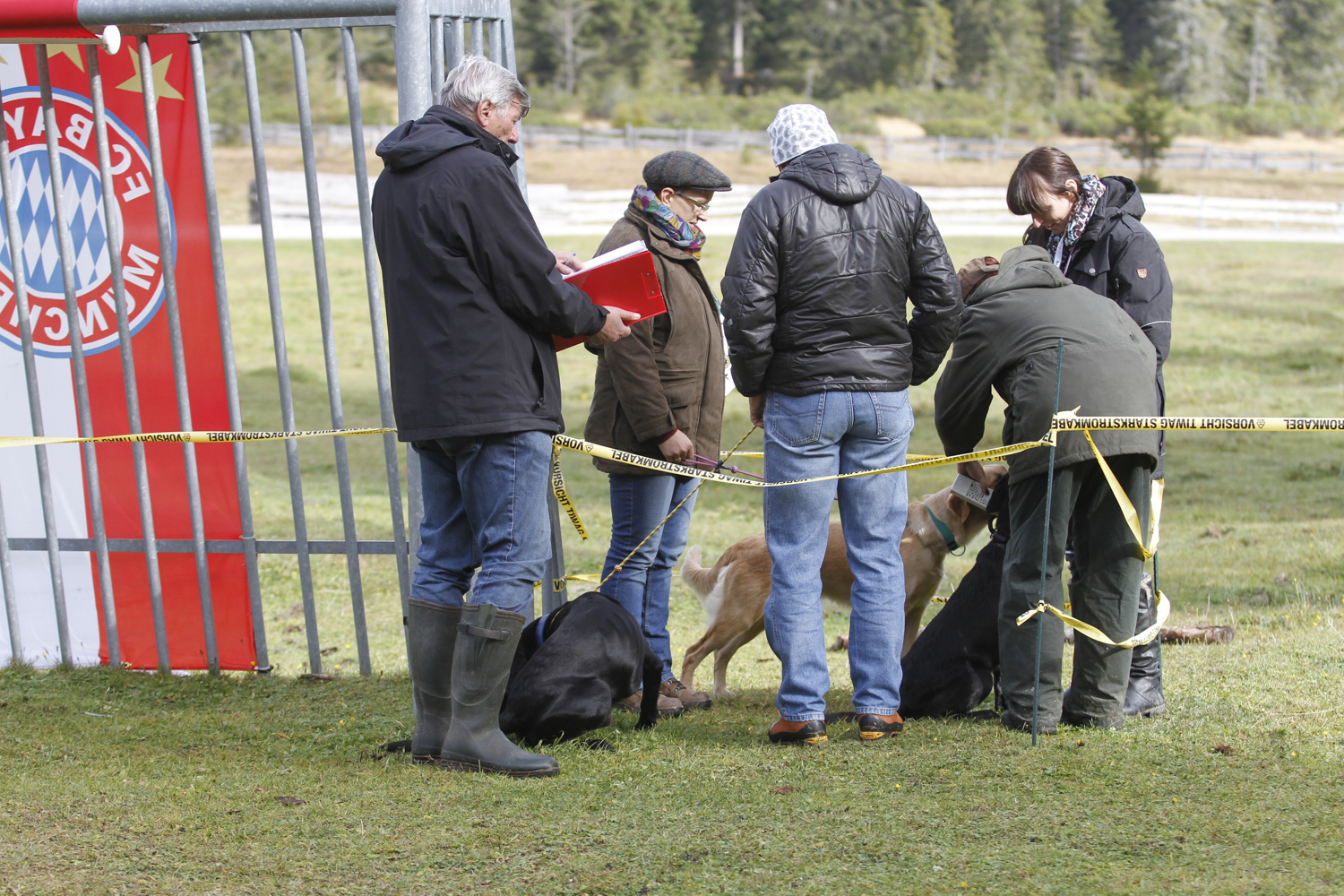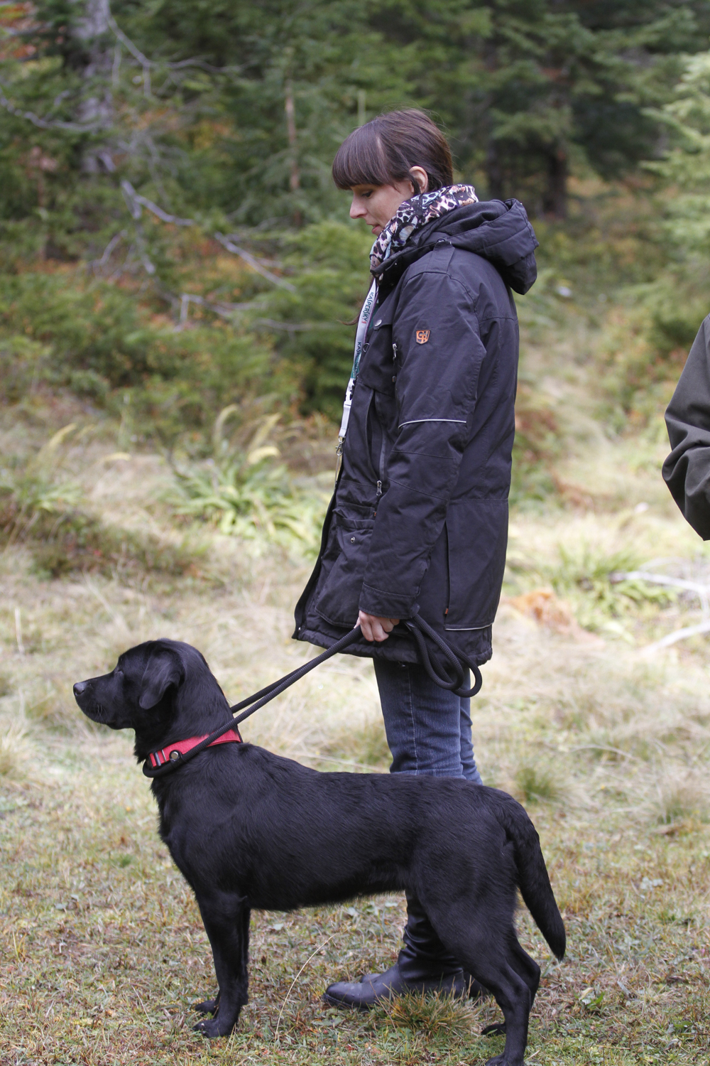 Wir sind zum Wesenstest des österreichischen Retrieverclubs in Seefeld/Tirol angetreten. Diesen benötigen wir, um die Zuchtzulassung für Fiby zu erhalten. Bei diesem Test werden Wesen und Anlagen des Retrievers beurteilt. Der Retriever soll ein idealer Familienhund sein, der allen erdenklichen Alltagssituationen gewachsen ist. Die Freundlichkeit und Sicherheit im Umgang mit Menschen, aber auch die Apportierfreude (die ja ebenfalls ein Rassemerkmal ist) werden hier auf den Prüfstand gestellt. Da sich nicht nur optische sondern auch charakterliche Anlagen vererben können, sollte ein Wesenstest für jeden Retriever-Züchter selbstverständlich sein.In Prüfungssituationen bin ich eigentlich nie entspannt – das ist auch ein Mitgrund, warum ich mit meinen Hunden so gut wie nie bei Prüfungen antrete. Dementsprechend aufgeregt startete ich am frühen Samstagmorgen meine Reise nach Seefeld. Ich kenne meine Fiby-Maus und wusste, dass sie alle Übungen meistern wird – das tat meiner Nervosität jedoch keinen Abbruch. Der Test startete im Formwertring wo die optischen Eigenschaften der Hunde beurteilt werden und wir schlossen diesen Teil mit folgender Richterbewertung ab: “3 Jahre alte schwarze Hündin, korrekter Typ, femininer Kopf mit liebem Ausdruck, gute Größe, korrekte Knochenstärke, Brustkorb sollte eine Spur tiefer und breiter sein, vorne steil hinten ausreichend gewinkelt, Bewegung in Ordnung – SEHR GUT”.