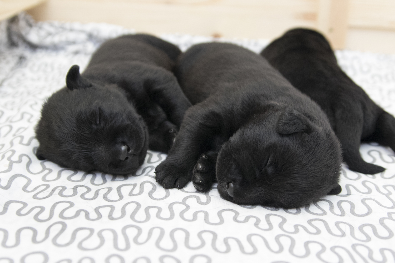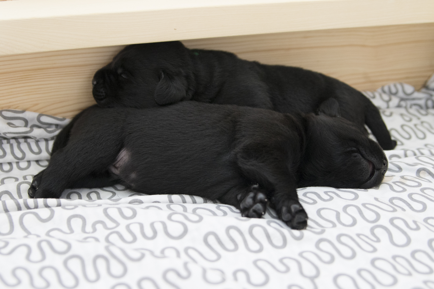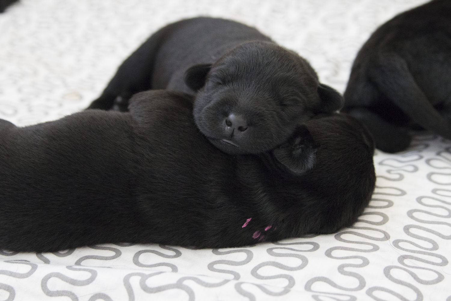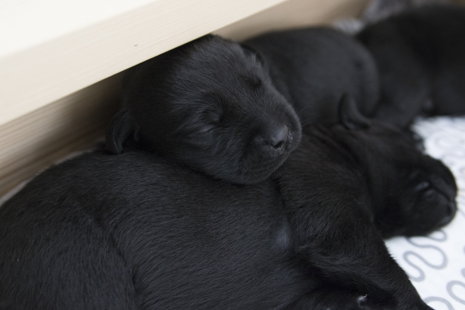 Viel Neues gibt es im Moment nicht zu berichten...die Welt der Zwerge besteht immer noch aus schlafen und trinken. Wobei sie mittlerweile im Schlaf bereits erste Bell- und Knurrversuche starten. Und heute morgen stand Arthur erstmals auf 4 Beinen...für eine Millisekunde. Ich freue mich auf die nächsten Tage...sobald die Babies ihre Augen geöffnet haben, wird es neue Bilder geben...heute mal ein paar aktuelle Bilder aus der Wurfkiste: