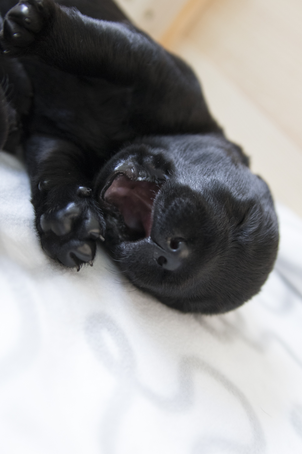 Gestern stand das erste Krallen schneiden auf dem Tagesplan...auch das hat problemlos funktioniert und bis auf ein paar kleine Protestschreie ließen alle die Prozedur über sich ergehen. Das Schneiden der Krallen ist besonders für Fiby eine Erleichterung...die Minikrallen sind beim Milchtreten doch sehr unangenehm und die Gefahr einer Gesäugeentzündung steigt mit jedem kleinen Kratzer.