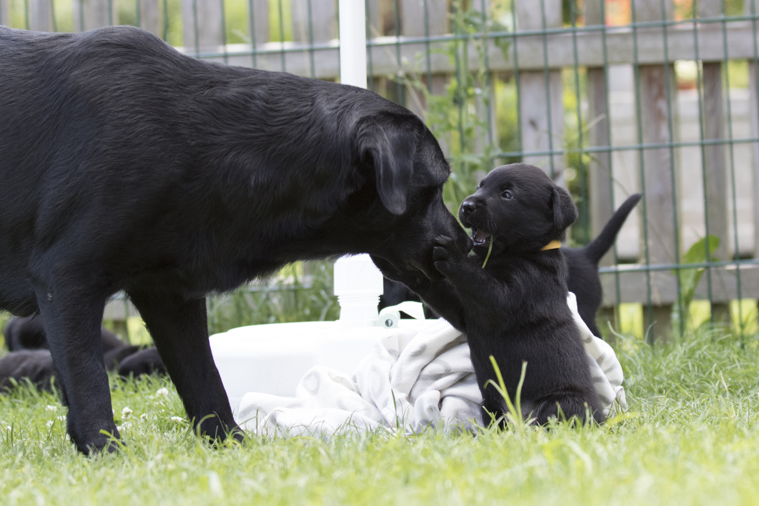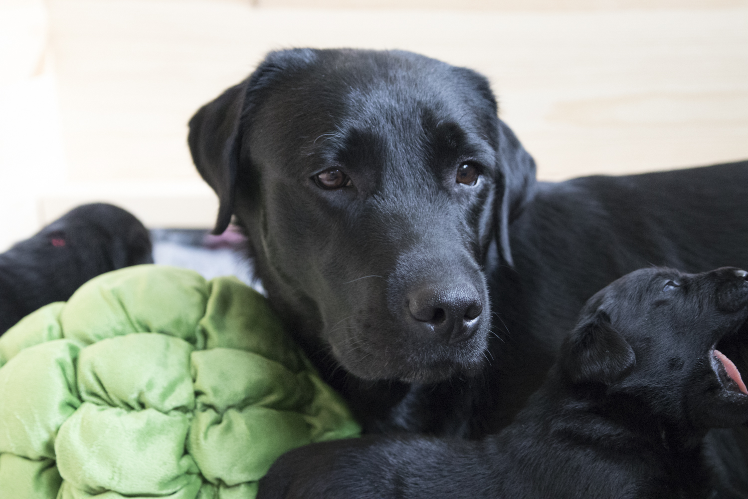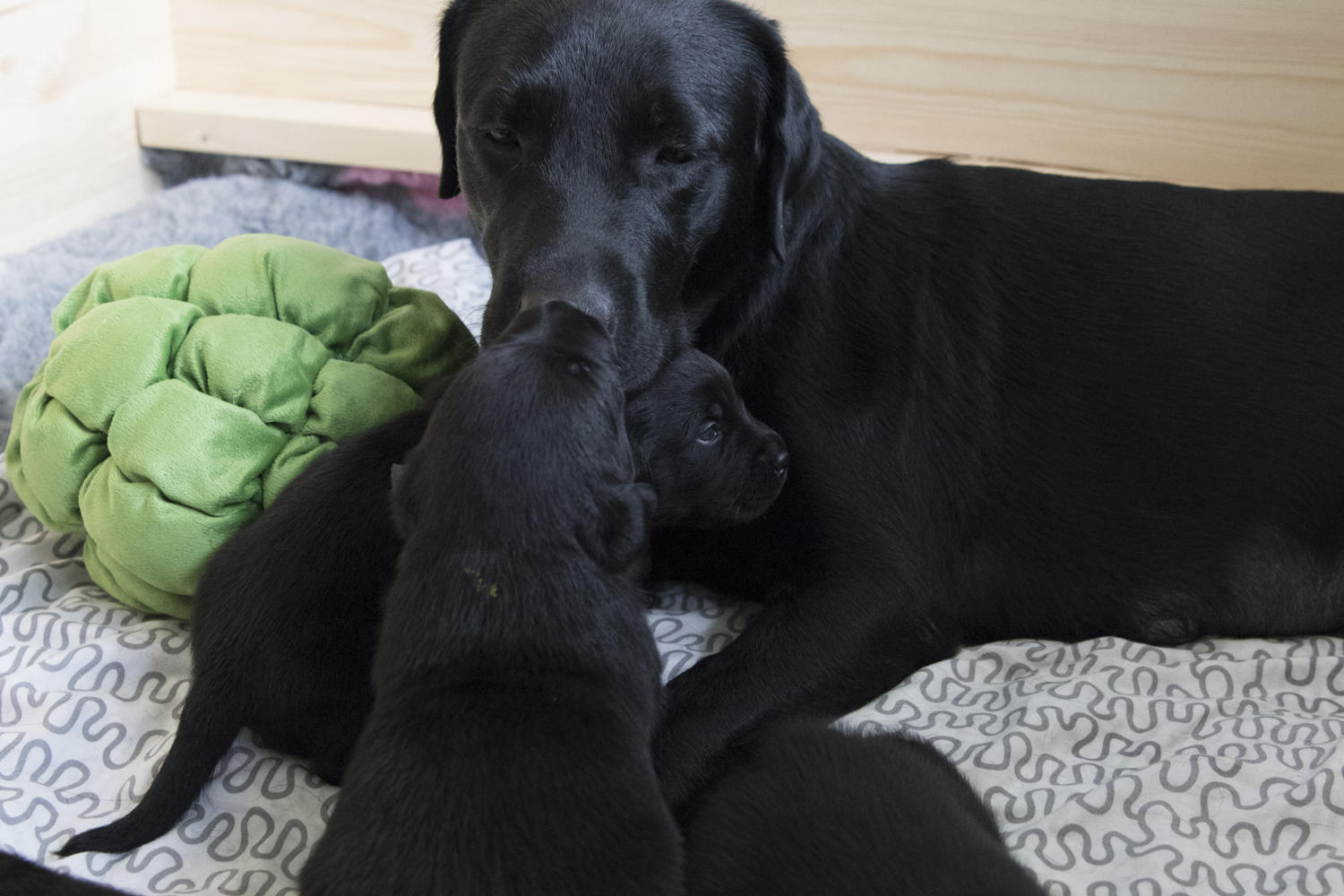 Sogar die Wurfkiste mussten wir verkleinern...es war Samstag Abend als Fiby plötzlich total gestresst durch die Wurfkiste rannte und die Welpen von einem Eck ins nächste trug. Bis ich endlich kapierte, dass Frau Übermutti ihre Welpen unbedingt in ihrer Nähe haben will...alle an einem Fleck. Jetzt ist die Wurfkiste um mehr als die Hälfte kleiner...und Fiby um einiges zufriedener. Ich bin so stolz auf sie und freue mich, dass meine Babies so viel Fürsorge und Liebe erfahren dürfen...nicht nur von mir, sondern auch von ihrer Mami.